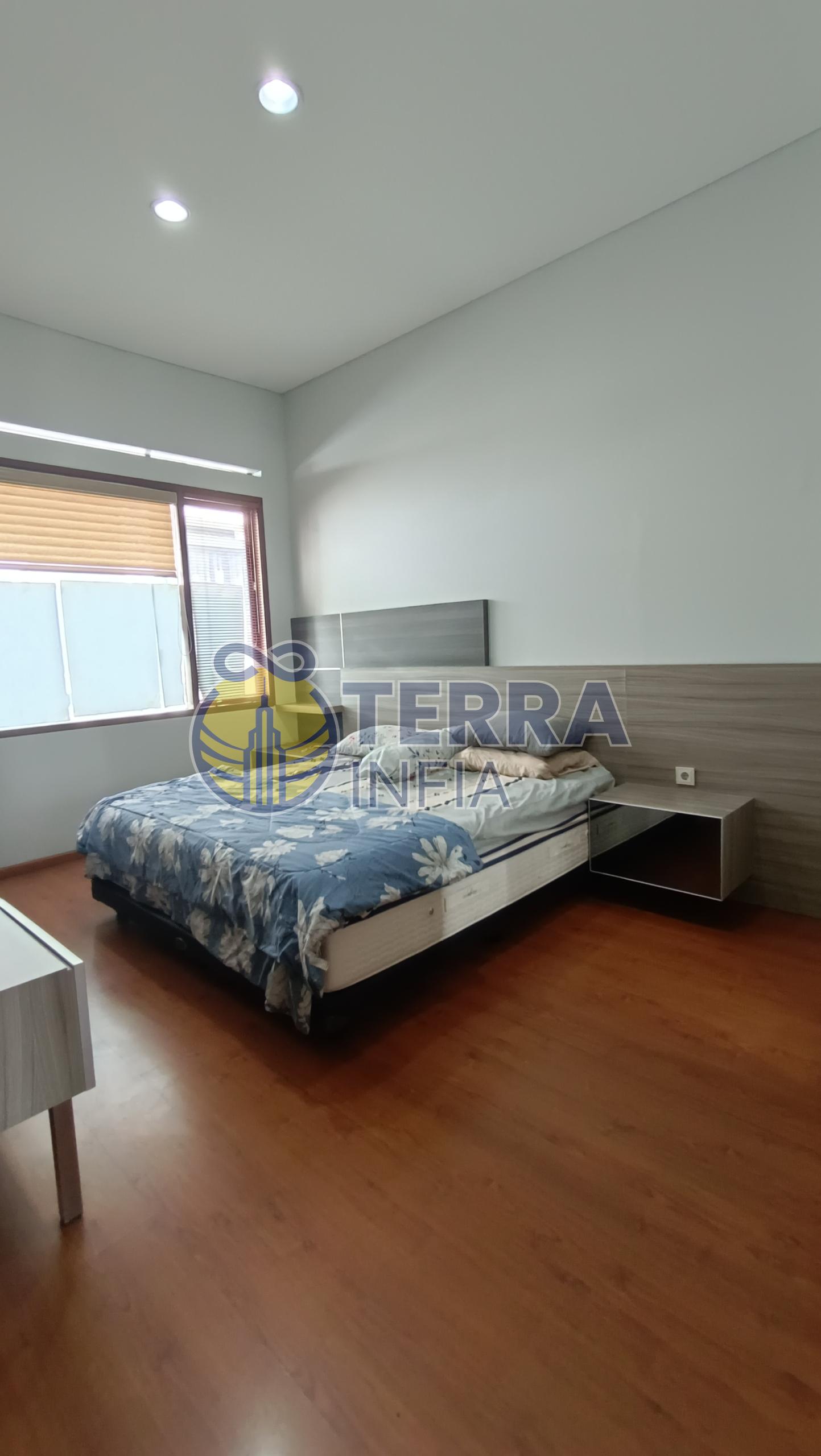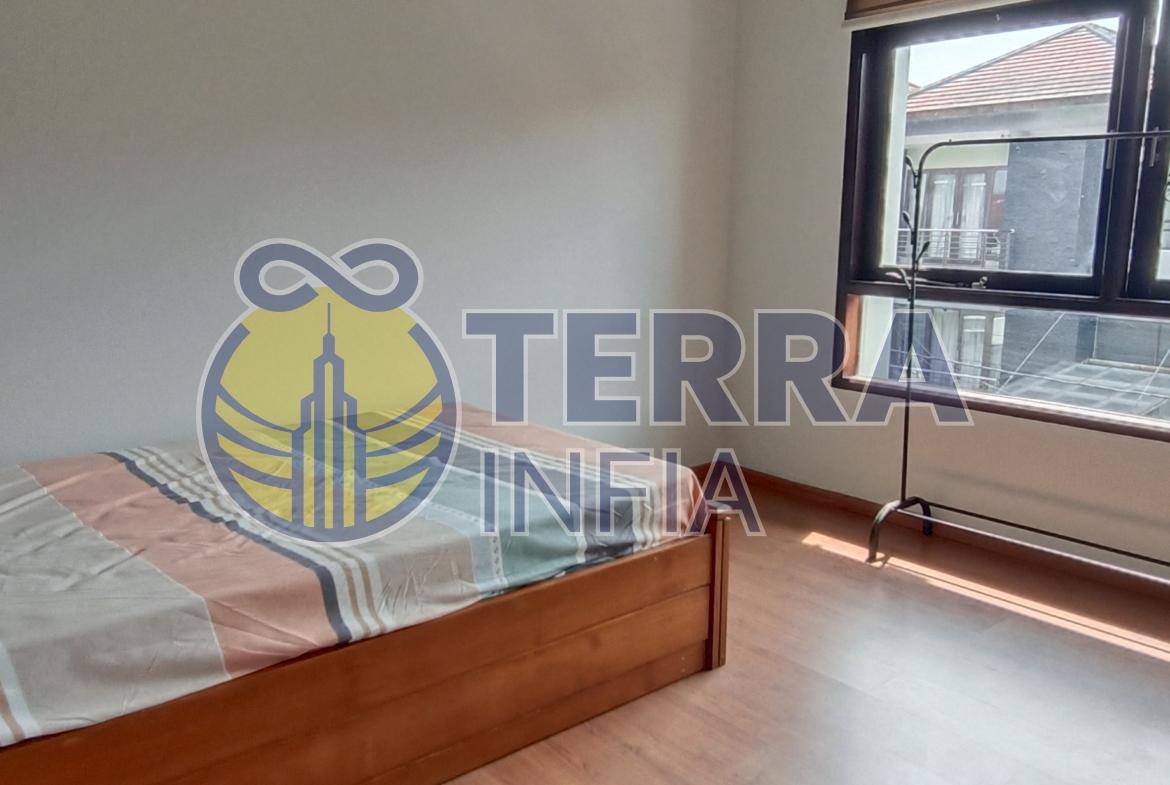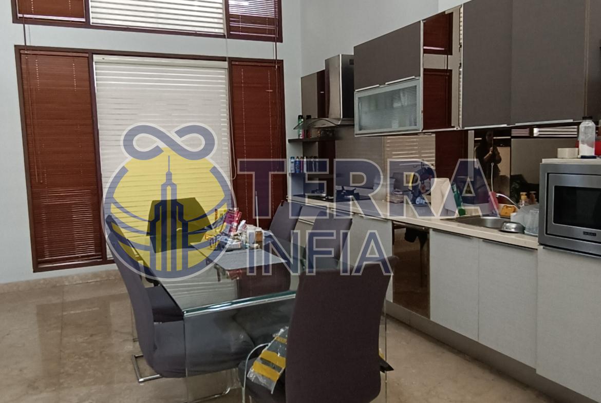 Rumah ini sudah furnished, lengkap dengan 3 unit AC, dapur bersih, dapur kotor, ruang tamu, dan ruang makan yang luas.
